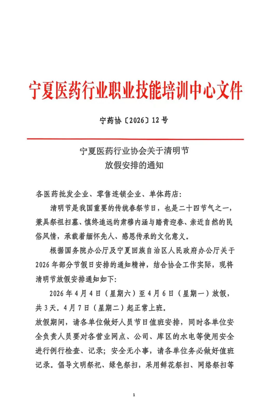 2026年清明放假通知